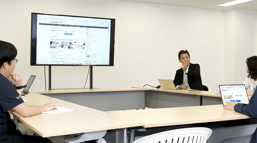 営業の業務は「どうしたらお客様の理想を実現できるか」を考えることから始まります。当社のサービスに興味を持っていただいたお客様へは、お客様の理想を丁寧にヒアリングしたうえで当社ができることをご提案します。