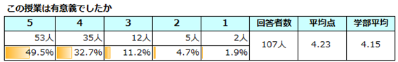 しかし、当該の授業を「大変有意義」だと感じている学生は半分もいない(49.5%)が実際です。