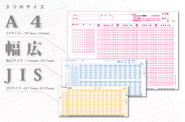 このページでは、すぐに使える「既製品」をご紹介します。 マークシートのオーダーメイドをお望みの場合は「特注品マークシート」をご覧ください。