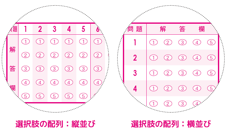 また国家試験はカンニング防止のために配布される解答用紙が2種類あります(マークの配列が異なります) ので、専用マークシートも同様に2種類ご用意しております。